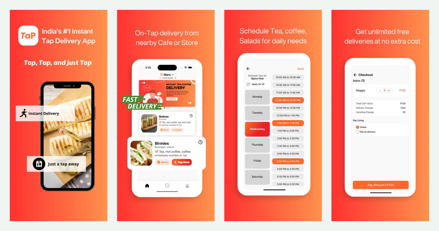 Tap Rocket is an instant tap delivery application designed to provide quick and hassle-free delivery during busy hours. The app allows users to order tea, coffee, salads, and daily essentials with just a single tap, ensuring speed, convenience, and reliability.